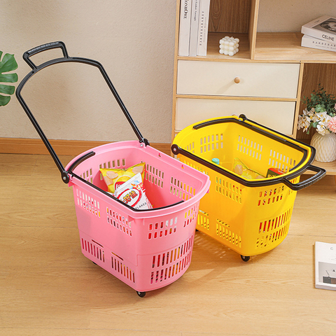 45L Giỏ mua sắm giỏ Giỏ mua sắm giỏ màu hồng với bánh xe
