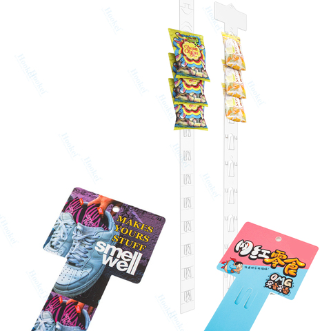 Hàng tạp hóa accroche nhựa PVC PP đồ ăn nhẹ Móc áo barra colgante bán lẻ hiển thị treo hàng hóa hiển thị Clip Strips