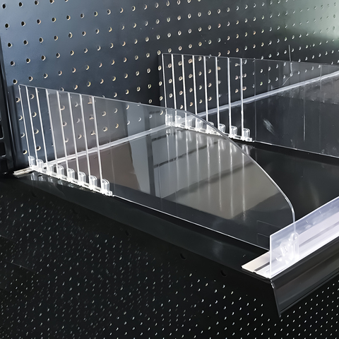 فواصل أرفف أكريليك سلكية للبيع بالتجزئة شفافة للصيدلية بلاستيك أكريليك رف مقسم مقسم فواصل أرفف ثلاجة للمستودعات