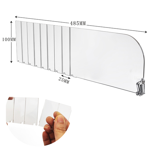 Superventas Divisor de estante de plástico transparente Divisores de estante de acrílico de ancho ajustable