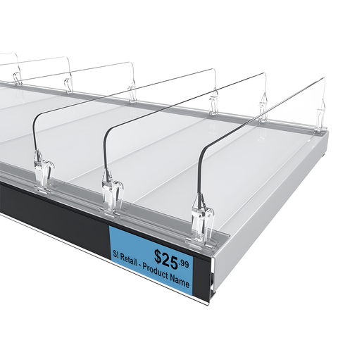 सुपरमार्केट डिस्प्ले चुंबकीय एल-आकार के pvc शेल्फ डिवाइडर के साथ सुपरमार्केट डिस्प्ले